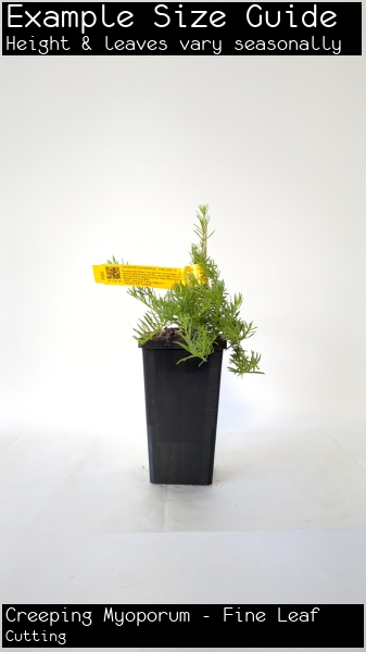 Myoporum parvifolium 'Fine Leaf Form' is an evergreen, fast growing, spreading ground-cover with fine, narrow foliage. This easy to grow native plant produces a mass of small star shaped flowers over spring and summer.Myoporum parvifolium 'Fine Leaf Form' is best grown in full sun but will also grow well in part shade. Myoporum parvifolium 'Fine Leaf Form' will tolerate coastal conditions, dryness and moderate frost. It will also perform well in a variety of soil types but prefers well drained spots.This is an excellent plant for rockeries and embankments or to help smother out weeds in the garden. Myoporum parvifolium 'Fine Leaf Form' is a very quick growing plant that stays very low to the ground to produce a fantastic green 'lawn' in your garden. To maintain compact growth it is best to prune back after flowering.