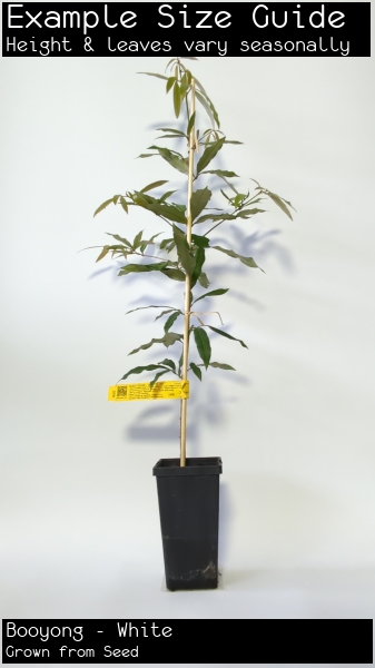 Medium to large tree, normally inhabiting creek banks. Drooping foliage, usually with some bright red leaves. White flowers. Very fast and hardy if ample water is available.