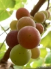 Vitis viniferaPink Iona being held up by hand showing the large grape size and the pink purple flesh