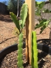 It has only flowered twice so far but despite hand pollination, there was no fruit set. UPDATE: Flowers regularly and sets fruit without hand pollination. Fruit is divine! Much sweeter than the white-fleshed pitaya.