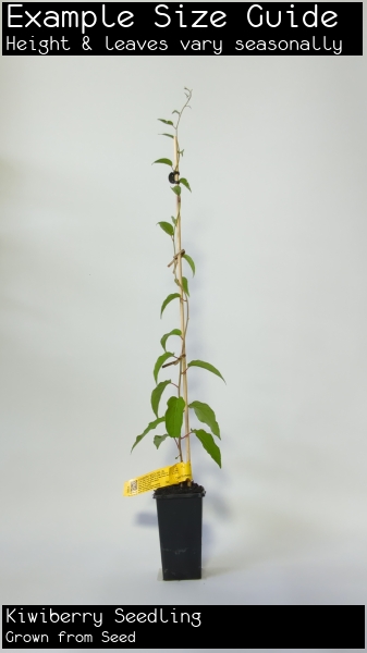 A small, green to purple skinned fruit similar to kiwifruit. Often sweeter than the kiwifruit, hardy kiwifruit can be eaten whole and need not be peeled. The skin is smooth and leathery providing a deceiving contrast to the fuzzy, brown exterior of its larger sibling fruits. Plant 3 or more to increase your chances of getting both male and female plants for pollination.