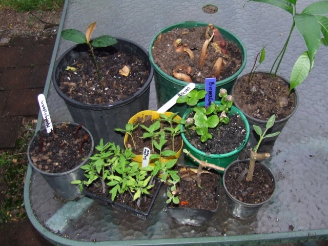 Some kind of garcinia in the top left pot and some durian germinating next to it Mike?