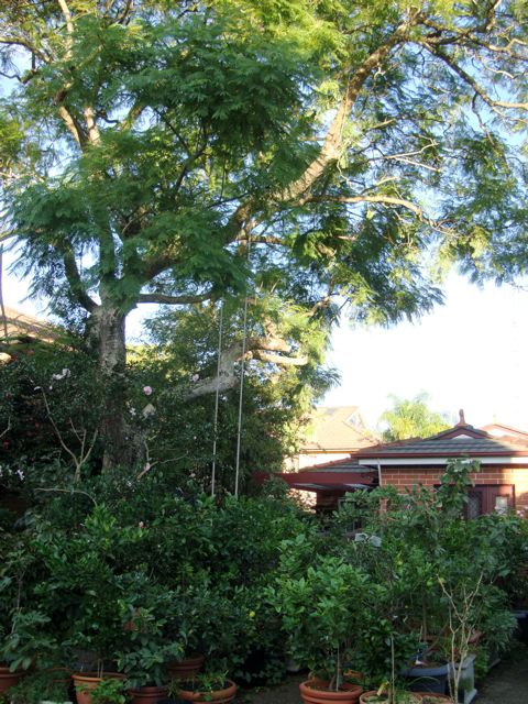 My entire garden is in shade now most of the day. The jacaranda is probably best if you had to have a giant tree - it loses all its leaves in spring then loses all the flowers before putting on new leaves so there is an interval when light comes through. Also, it contribute mulch and offers protection during the hottest days. Under this giant I still get plenty of fruit, though perhaps less than optimum.