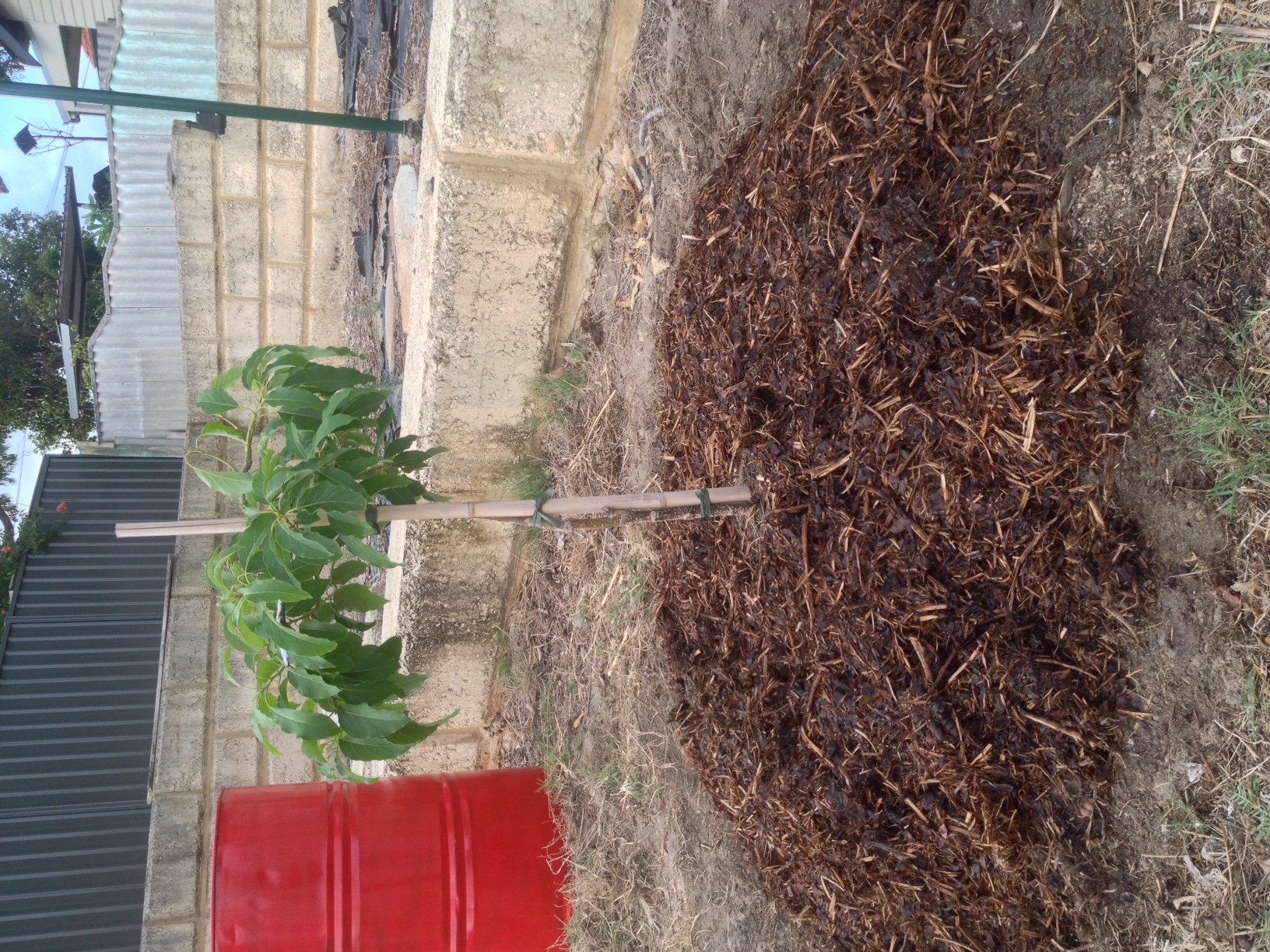 Here's a pic, but I'm still waiting to hear back from my friend as to what variety it is. I'll track down some anti-rot, and I'm currently giving it a short water everyday. Over the past few days I mounted the top soil slightly to help with drainage, and added some lucerne mulch. I also got my worm farm going this week so I've been feeding it diluted worm tea. The soil is fairly sandy, so any water seems to drain relatively quickly. We've got a decent sized yard that was a blank canvas when we bought the place 9 months ago. This avo tree is one of the few trees we've planted, and although we'll be adding others soon, ideally I want to give him plenty of space.