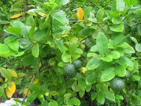 This healthy and productive lime tree was growing on coral rubble on an atoll with seemingly no real soil in the western Solomons. I don't know how this works- huge amounts of water seems enough to make it happy.