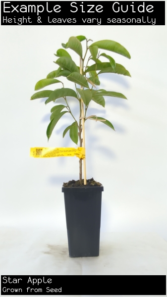 Sometimes known as Cainito is native to the West Indies where it is a very popular fruit. Fruit can be purple or green skinned. When cut in half there is an attractive star pattern. The flesh is sweet and tastes very smooth and aromatic. A very attractive tropical tree, leaves green above and gold underneath. Not suitable for temperate climates.