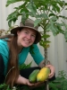 Carica pentagona. Was 2.5m high but now is only .75m because the branches have broken under the weight of the fruit. Needs supporting at all times.